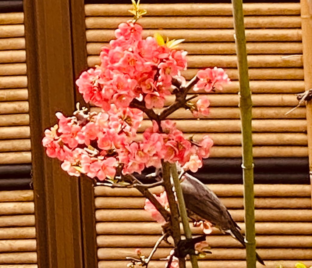 (木瓜に小鳥訪問 小鳥見つかりますか)